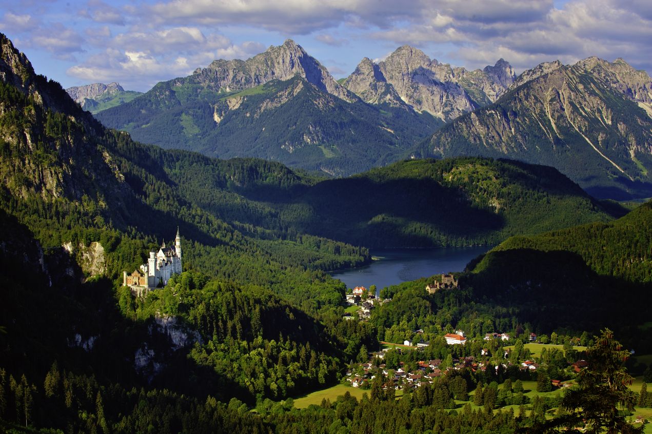 Im nahegelegenen Dorf Hohenschwangau eröffnet sich beim Mittagessen eine herrliche Aussicht auf den Alpsee, einen der schönsten Seen der Region. Weiter geht es auf der Romantischen Straße zur Wieskirche, einer Rokokokirche mit einzigartiger Architektur. Der nächste Stopp in Oberammergau lohnt sich schon wegen seiner hübschen Lüftelmalerei, einer traditionellen Bemalung der Häuser. Oberammergau ist aber vor allem wegen seiner Passionsspiele berühmt geworden, die nur alle 10 Jahre stattfinden. Das nächste Mal schon 2020. Zum krönenden Abschluss steht noch Schloss Linderhof auf dem Plan, ein weiterer ehemaliger Landsitz König Ludwigs II. tief im Wald gelegen, war Linderhof die Burg, in der der exzentrische König die meiste Zeit verbrachte. Nicht nur das Schloss selbst fasziniert mit aufwendigen Räumen wie dem Spiegelsaal, sondern auch die Außenanlagen mit seiner Venushöhle. Eine Legende erzählt, dass sie nach dem Vorbild der Blauen Grotte von Capri gebaut wurde.