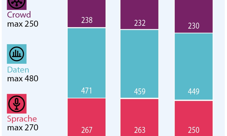 Bereits zum achten Mal in Folge erzielt Magenta den Gesamtsieg in Österreich, mit 976 von 1.000 möglichen Punkten und der Note „überragend“. Der Testsieger liegt in allen drei Testdisziplinen vorn: Sprache, Daten und Crowdsourcing. A1 folgt mit 954 Punkten und ebenfalls der Note „überragend“. In den Großstädten liegt A1 fast gleichauf mit Magenta. Drei erhält mit 929 Punkten die Note „sehr gut“ und den dritten Platz. Als erster Anbieter im DACH-Raum ließ Drei das in seinem Netz bereits weit ausgebaute 5G Standalone berücksichtigen – einige Punkteinbußen im Vergleich zum Vorjahr sind auf die Detailanpassungen dieser neuen Netztechnik zurückzuführen.