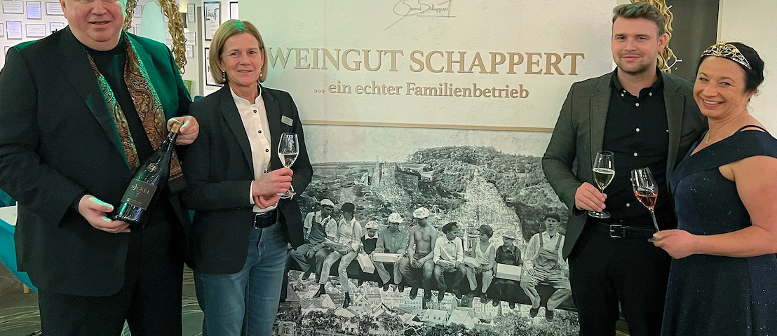 Mit allen Sinnen genießen, war die Devise der diesjährigen 28. Weingala im Mercure Tagungs- & Landhotel Krefeld. Erlesene Tropfen vom traditionsreichen Weingut Schappert wurden harmonisch mit den kulinarischen Genüssen des einzigartigen Menüs abgestimmt, das die Küchenkünstler unter der Regie des Küchenchefs Thomas Meischner auf die Teller zauberten. Mit Charme und Fachwissen stellten Jung-Winzer Felix Nickel Schappert und Roswitha Martin, die Weinmajestät von der Nahe, bei dieser Genussreise die ausgewählten Weine vor.