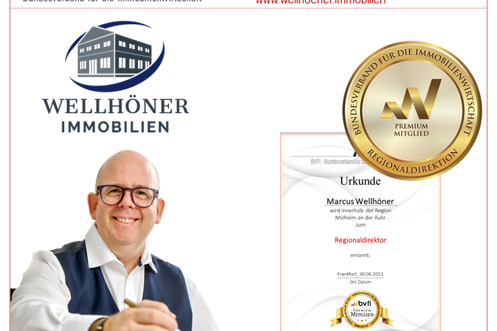 Marcus Wellhöner wurde mit sofortiger Wirkung zum Regionaldirektor des Bundesverbandes für die Immobilienwirtschaft, kurz BVFI, für Mülheim an der Ruhr ernannt.