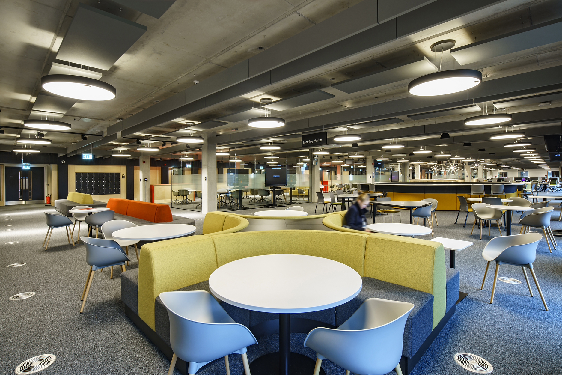 Im Gebäude The Catalyst wurden von Glamox dazu fast 1.900 Leuchten für unterschiedlichste Aufgaben und ästhetische Umgebungen installiert. Für den Außenbereich reichten diese von der wandmontierten, vandalismusgeschützten Leuchte O10 bis zur mastmontierten Leuchte O55 für die Straßen- und Wegebeleuchtung. Die Produkte für den Innenbereich umfassten die Stromschienenstrahler S80 und die eleganten, abgehängten C90-Leuchten. In sozialen Bereichen sorgen die Pendelleuchten SVA mit modernem skandinavischem Design für stilvolle und angenehme Atmosphäre. Individuelle Anpassungen machten es möglich, auch die Notleuchten mit dem Wireless-System zu verbinden und mit einem zentralen Batteriesystem zu versorgen.
