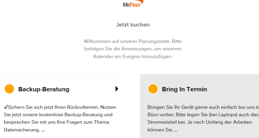 Ab sofort können die KundenInnen bei McFoxx bequem einen Termin zur individuell gewünschten Zeit buchen, müssen also nicht mehr auf einen Rückruf warten. Zur Wahl stehen verschiedene Terminarten, Fernwartung, Vor-Ort-Service oder ein kostenloser Rückruf zum Kennenlernen oder für erklärende Fragen. Bei der Buchung lassen sich neben den Gründen entsprechende Zeitfenster verbindlich buchen, sodass der jeweils passende Experte angefragt wird. McFoxx vermeidet so, dass die KundenInnen auf einen Rückruf warten müssen. Sie können einen solchen gezielt einplanen und sich entsprechend darauf vorbereiten. „Im System wird angezeigt, wann unsere Experten, für welche Termine zur Verfügung stehen. Mit wenigen Klicks lassen sich der Wunschtermin beim passenden Experten und das jeweilige Zeitfenster reservieren. Dies erspart beiden Seiten ein lästiges E-Mail Pingpong“, erklärt Fleckner.