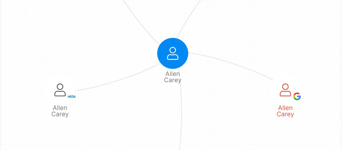 Verknüpfung von Cloud-übergreifenden Identitäten: DatAdvantage Cloud ist in der Lage, automatisch Konten (einschließlich persönlicher Konten) über verschiedene Cloud-Dienste hinweg zu einer einzigen Identität zu verknüpfen. Auf diese Weise lassen sich sowohl menschliche als auch nicht-menschliche überprivilegierte Schattenidentitäten identifizieren.