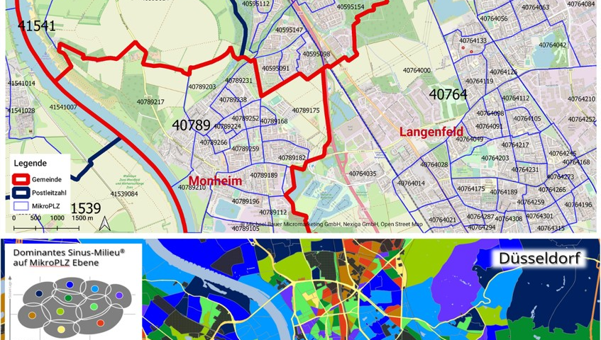 So lassen sich zum Beispiel die bekannten Sinus-Milieus® microgeographisch abbilden und nachbarschaftliche Strukturen verdeutlichen.