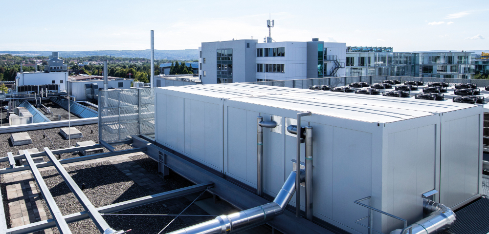 Nettetal, 08. August 2023. Produktionserhöhungen steigerten den Kühl- und Klimatisierungsbedarf der Sartorius AG in Göttingen. Das Problem: Der Standort der bisherigen Anlage bot wenig Platz für weitere Technik. Mit der Lösung ging es im wahrsten Sinne des Wortes aufwärts: Das Engineering-Team von MTA Deutschland packte die innovative Kältetechnik in Container und platzierte diese auf dem Gebäudedach. Die Anlage spart nicht nur Raum, sondern auch fast 28 Prozent Energie. Zudem arbeitet sie mit klimafreundlichem Kältemittel. Für die Kaltwasserversorgung während des 25-wöchigen Umbaus installierte MTA eine 800-Kilowatt-Mietkälteanlage mit frequenzgeregelten Pumpen und Wärmetauschern.