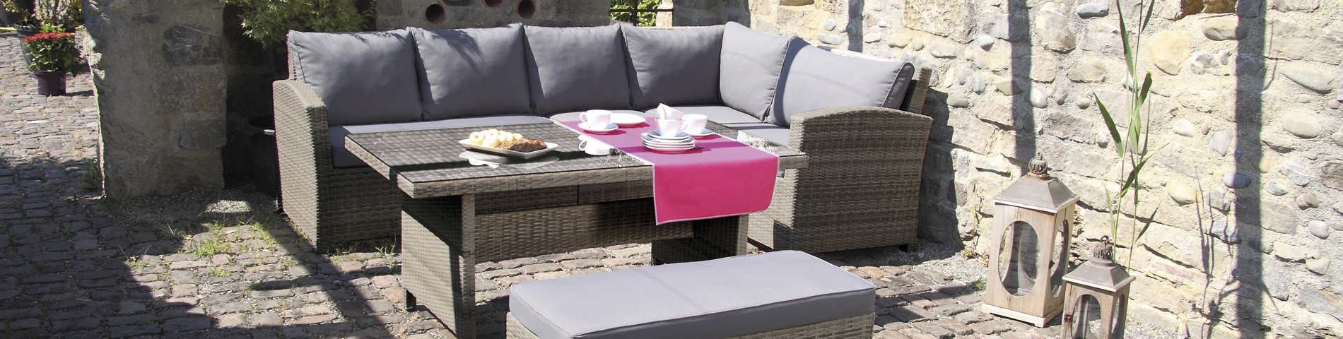 Im acamp-Sortiment finden Sie dafür ein breites Sortiment an Loungemöbeln, mit denen Sie Ihren Außenbereich flexibel um eine attraktive Lounge erweitern können. Für langlebige Freude an den komfortablen Sitzgelegenheiten sorgen das moderne Design, die wetterfesten Materialien und die stabile Bauweise der acamp Loungemöbel – das werden nicht nur Sie, sondern auch Ihre Gäste schätzen. Die Möbelsets lassen sich zudem hervorragend mit weiteren acamp Gartenmöbeln kombinieren, um Ihre Lounge perfekt an die Gestaltung Ihrer Außenflächen anzupassen.