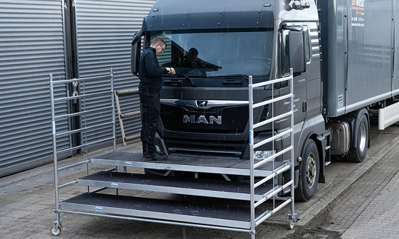 Für Wartungs- oder Reparaturarbeiten wird täglich sicherer Zugang zu Nutzfahrzeugen benötigt, sei es in der Form von Dacharbeitsständen, Treppen oder Sondergerüsten. Mit der Tankwagenleiter und dem Original KRAUSE EisfreiGerüst-System hat das hessische Traditionsunternehmen u. a. zwei Produkte auf dem Markt, die auf Autohöfen, in Werkstätten oder Betriebshöfen täglich zum Einsatz kommen. Sie entsprechen sämtlichen Anforderungen in punkto Arbeitssicherheit, Ergonomie und Flexibilität.