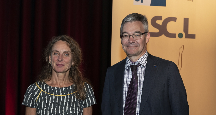 Bildunterschrift: Dr. Christine Lötters (SC Lötters) und Michael Pieck (IHK Bonn/Rhein-Sieg) bei der Ludwig-Preisverleihung 2019 (Foto: Jo Hempel)