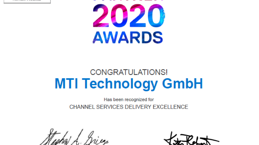 Wiesbaden, 19. November 2020 – Die MTI Technology GmbH wurde im November zum wiederholten Mal mit dem begehrten Dell EMC „Channel Services Delivery Excellence Award“ belohnt. Bewertet wurden unterschiedliche Disziplinen und das Feedback zahlreicher Kunden. Zu den Bewertungskategorien zählen beispielsweise Service für die Bereitstellung (Deployment Delivery Service) und Support-Services (Support Delivery). In allen Disziplinen geben die Kunden Bestnoten für MTI Technology.