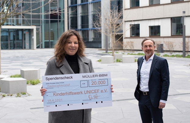 Am 19.04.2021 überreichte Walter Grotz, stellvertretend für die Geschäftsleitung und die Belegschaft der Müller-BBM GmbH, einen symbolischen Scheck über 20.000 EUR an Frau Ursula Auginski, Leiterin UNICEF-Arbeitsgruppe München und Oberbayern. Der Betrag soll dem UN-Kinderhilfswerk zur Bekämpfung der Not durch die weltweite Corona-Pandemie dienen. UNICEF verteilt beispielsweise Hygieneartikel wie Seife und Desinfektionsmittel an benachteiligte Kinder und Familien, stellt medizinische Artikel und Schutzausrüstung bereit und klärt über Hygieneregeln auf. Gemeinsam mit Partnern bereitet UNICEF zudem die größte Impfkampagne aller Zeiten vor, um Menschen in den ärmeren Ländern möglichst schnell gegen Corona zu impfen.