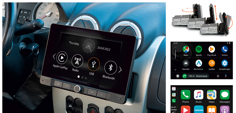 With the X-127 use of smartphones in the vehicle is particularly safe and easy: simply connect your mobile phone directly to the infotainer via the USB port with the X-127 supporting Apple CarPlay and Google Android Auto. Whether using navigation maps, making phone calls, listening to messages, dictation, and playing songs and podcasts – you can conveniently control the relevant app via the touchscreen of the XZENT, or Apple Siri or Google Assistant voice control.
