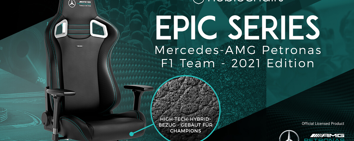 Mit der Mercedes-AMG Petronas Formula One Team – 2021 Edition des EPIC bietet noblechairs einen stylischen Gaming-Stuhl an, der in Zusammenarbeit mit den siebenmaligen F1™ World Constructors“ Champions in Deutschland entwickelt worden ist. Das Ergebnis ist ein luxuriöser Gaming-Chair, der mit seinem von der Rennlackierung des Mercedes-AMG F1 W11 EQ Performance inspirierten und offiziell lizenzierten Design in den charakteristischen Farben des Teams die Herzen von F1 Rennsport-Fans höherschlagen lässt. Jetzt neu bei Caseking!