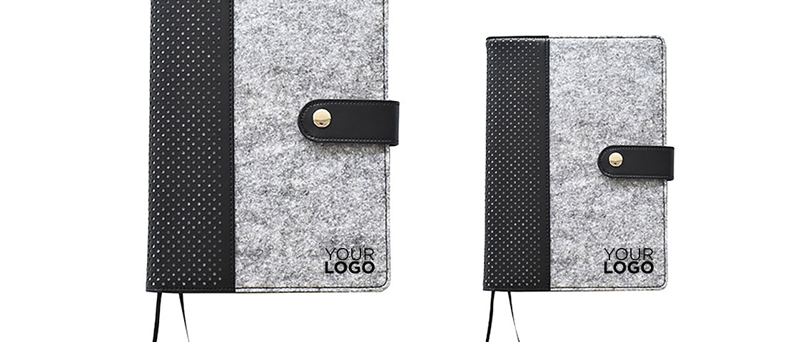 Nehmen Sie täglich das DIN A5/A6 Notizbuch „Smart“ aus strapazierfähigem Filzmaterial mit individuellem Logoaufdruck in die Hand