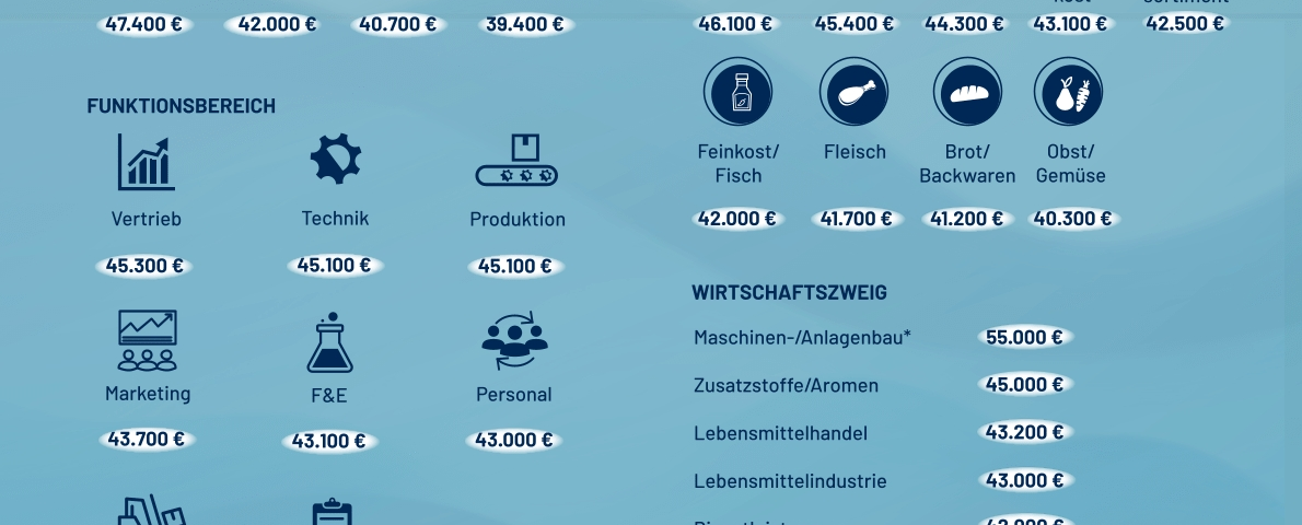 Auch im Branchenvergleich kommt es zu größeren Unterschieden: Die Milchbranche legt stark zu und vergütet nun mit einem jährlichen Durchschnittsgehalt von 46.100 EUR, was zu den vorherigen 43.400 EUR ein starker Anstieg ist. Damit katapultiert sie die Getränkeindustrie mit 45.400 EUR auf Platz zwei. Die Fleischbranche zeigt sich als einzige Branche, die im Vergleich zum Vorjahr weniger für ihre Nachwuchstalente investiert: Von 42.000 EUR gibt es einen leichten Rückgang auf 41.700 EUR.