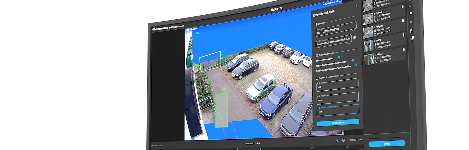 Mit der neuen Exportfunktionalität auf der Recherche-Seite im IPS NextGen Client ist der Software-Entwicklung in München ein wahres Meisterstück gelungen: Der User kann direkt eine große Anzahl von ausgewählten Aufnahmen gesammelt exportieren. Vorbei die Zeiten, in denen jede Sequenz einzeln ausgewählt und exportiert werden musste. Der Zeitbereich zur Auswahl der betreffenden Sequenzen ist einfach und nutzerfreundlich einstellbar. Ein Export erfolgt als Archivdatei mit Passwortfunktion. Die Funktion eignet sich dazu, aufgenommenes Beweismaterial etwa der Polizei zu übergeben und die Strafverfolgung zu unterstützen. Das Material lässt sich je nach Berechtigung so maskieren, dass Zonen oder Objekte unkenntlich sind und der Datenschutz eingehalten werden kann.