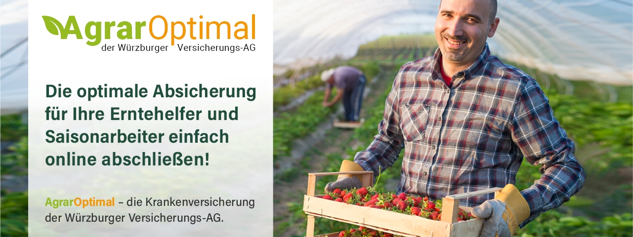 Die Würzburger Versicherungs-AG hat mit ihrem neuen Produkt AgrarOptimal ( https://www.erntehelfer-versichern.de) eine neue Krankenversicherung speziell für Erntehelfer und Saisonarbeiter auf den Markt gebracht.