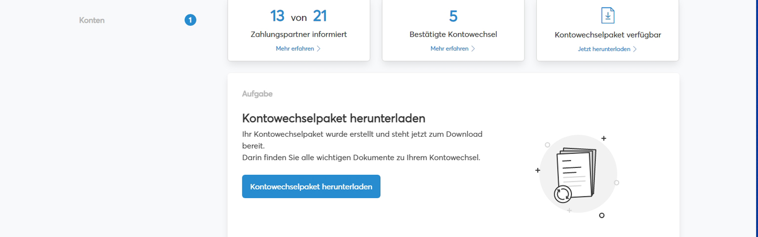 Darüber hinaus kann die Bank im Wechselstatus Empfehlungen zu weiterführenden Produkten wie etwa einer Kreditkarte oder ein Depot noch prominenter als bisher anzeigen lassen. „So können Banken ergänzende Produkte anbieten, obwohl sie den Kunden noch nicht kennen, und damit seine direkt nach dem Kontowechsel erhöhte Affinität, neue Verträge abzuschließen, nutzen“, betont Aleksandar Jeremic.
