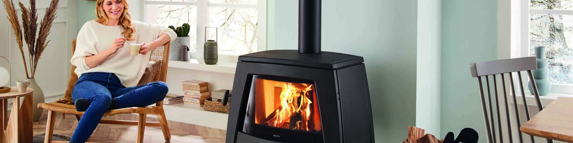 Durch die besondere Anmutung fügt sich dieser formschöne wie platzsparende Kaminofen in jedes Wohnumfeld ein und harmoniert sowohl mit hellen als auch dunklen Möbeln. Gerade der Dialog von natürlichen Hölzern und seinem schwarzen Korpus bietet einen warmen Kontrast mit hohem Wohlfühlfaktor. Und beim Arrangement mit zeitlosem Grau ist zurückhaltende Eleganz das Maß der Dinge. Wobei die gewölbte Glasscheibe in der schwenkbaren Feuerraumtür stets eine großzügige Sicht auf das leuchtende Flammenspiel bietet.