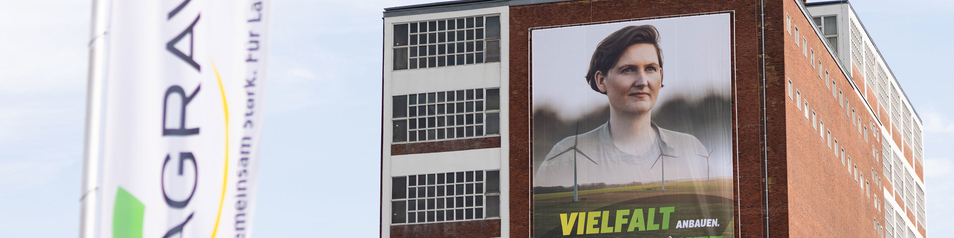 Das 10 mal 15 Meter große Banner aus Mesh-Gewebe zeigt Windräder und Photovoltaikanlagen auf landwirtschaftlichen Flächen sowie eine junge Land- und Energiewirtin. Es trägt den Titel „Vielfalt anbauen. Klimaschutz ausbauen.“ und illustriert das Zukunftsthema Erneuerbare Energien in der Landwirtschaft. Denn: Neben den landwirtschaftlichen Kernthemen Pflanzenbau und Tierhaltung erzeugen landwirtschaftliche Betriebe auch erneuerbare Energien.
