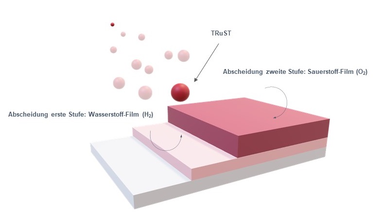 Zweistufige Abscheidung von Schichten mit Wasserstoff und Sauerstoff: