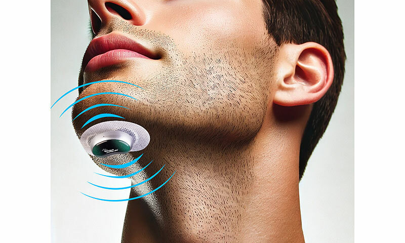 Unauffällig und komfortabel: Der Schnarchstopper wird einfach unter das Kinn geklebt. Dank seiner kompakten Größe und seines Gewichts von nur 12 g ist er kaum spürbar.