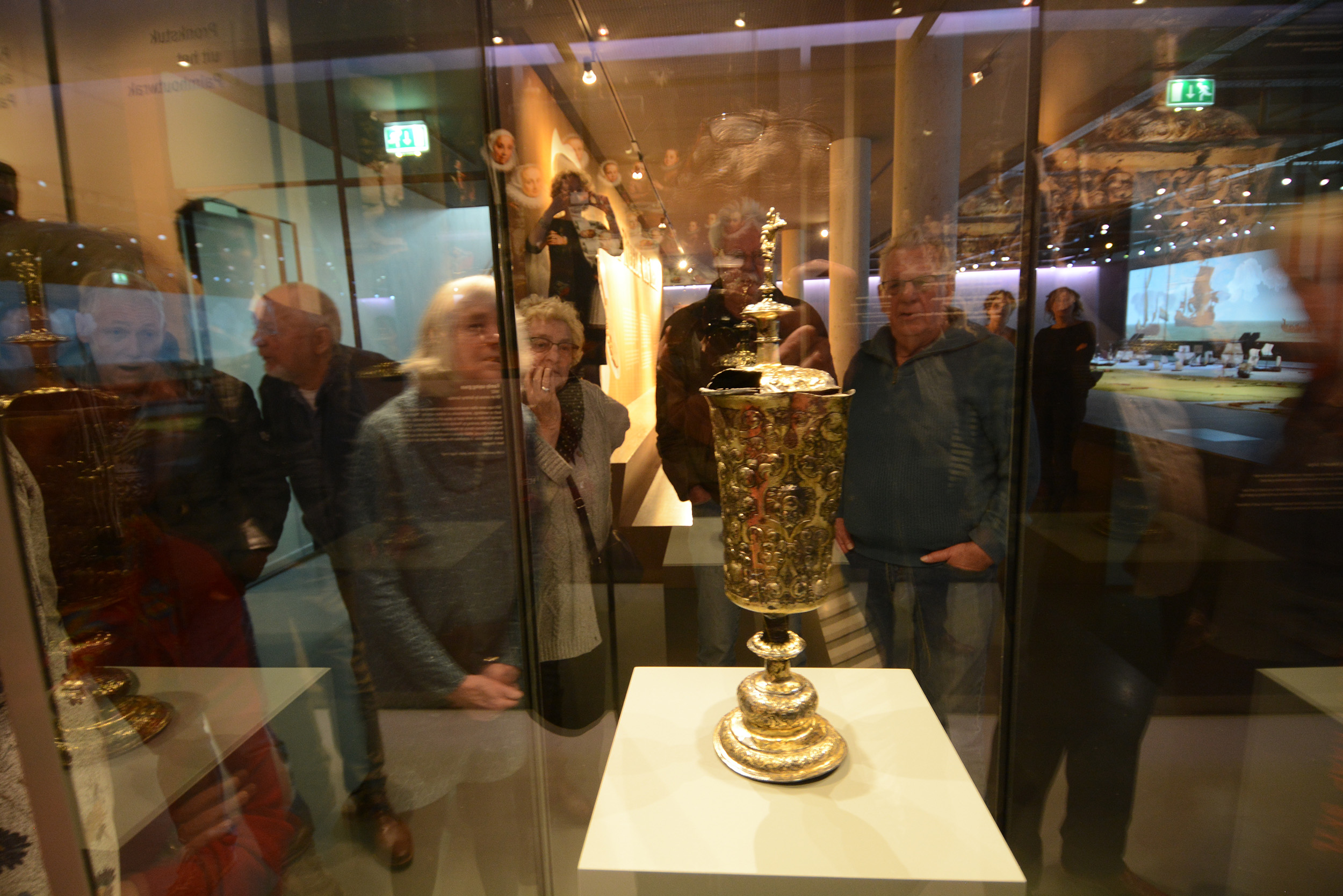 Der Prunkbecher ist im Rahmen der Ausstellung „Duiken in details“ (dt. Tauchen in Details) nun für ein halbes Jahr auf Texel zu sehen. Nach seinem jahrhundertelangen Aufenthalt auf dem Meeresboden wurde er zuvor fachkundig restauriert. Dank einer speziell für diesen Zweck hergestellten Glasvitrine kann der Silberbecher von allen Seiten genau betrachtet werden. Er ist mit getriebenen Blumenmotiven und Maskarons – Dekors, die ein Gesicht darstellen, – verziert. Im Museum Kaap Skil kann man diese Details auf einem Touchscreen vergrößern, um sie sich ganz genau anzusehen.