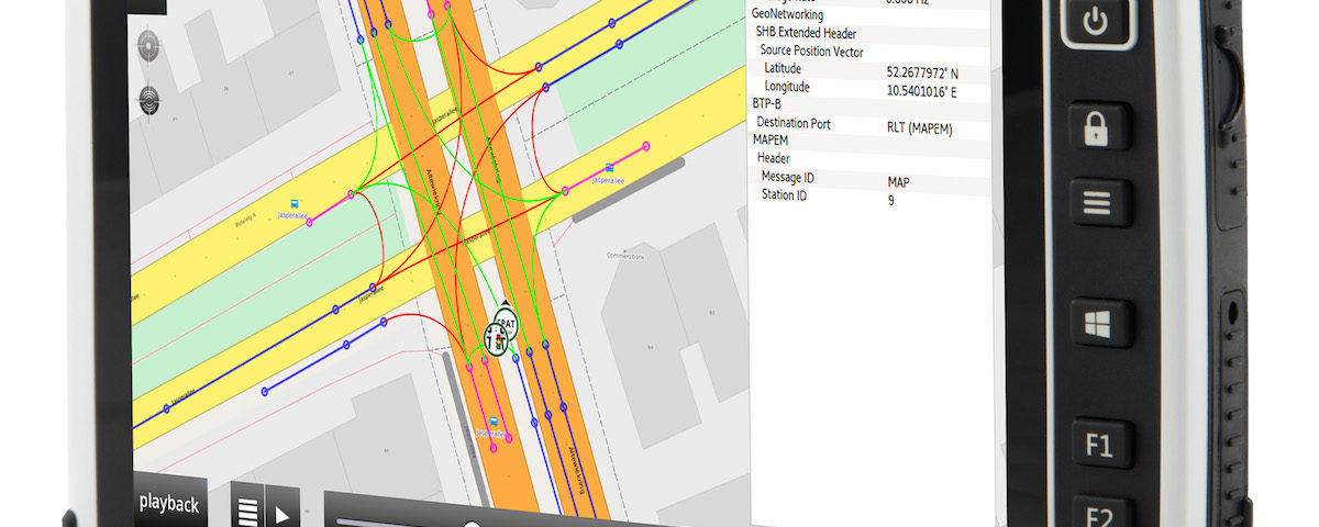 Das waveBEE®touch Tablet ermöglicht das Empfangen, Aufzeichnen sowie Abspielen und Analysieren von V2X-Kommunikation live und direkt vor Ort. Die unterschiedlichen Nachrichtentypen wie etwa CAM, DENM, SPAT, MAP, CPM oder BSM werden auf einer interaktiven Karte dargestellt und können detailliert analysiert werden. Mit dem autarken System stellt der Testingenieur sicher, dass die V2X-Sender die gewünschten, korrekten Nachrichten aussenden und ist daher zur Validierung und Diagnose komplexer V2X-Anwendungen optimal geeignet. Die integrierten Funktionen zum Aufzeichnen und Abspielen der Daten ermöglichen eine Detailanalyse ganzer V2X-Flotten bei Integrationstests bereits vor Ort – effizient und ohne weitere aufwendige Diagnosesysteme. Damit wird das Tablet zu einem unverzichtbaren Werkzeug für Fahrzeughersteller, Systemlieferanten und Infrastrukturbetreiber weltweit, welche Wartung und Support entsprechender V2X-Infrastruktur sicherstellen müssen.
