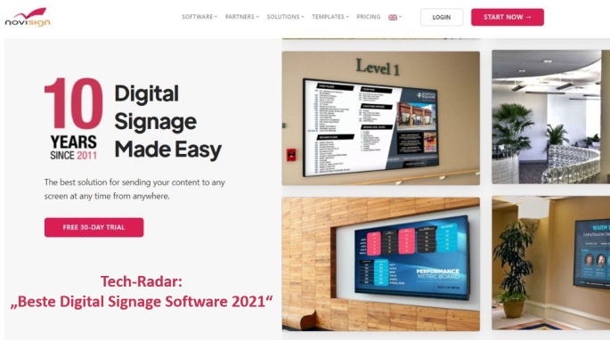 NoviSign wurde beim Tech-Radar Test „Best Digital Signage Software 2021 auf Platz 1 bewertet