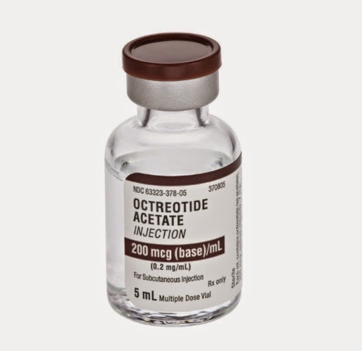 Octreotide is an octapeptide that resembles natural somatostatin pharmacologically. Octreotide acetate is widely used in the treatment of some types of cancers, diarrhea, and tumors such as carcinoid, pancreatic islet cell tumors, and vasoactive intestinal peptide secreting tumors. Octreotide acetate is also used to treat acromegaly when the body produces excess of hormone, which causes enlarged feet, hands, face, and head.