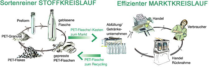 Intention bei der Gründung vor zwanzig Jahren war der Aufbau eines neuen, ökologisch und ökonomisch sinnvollen Verpackungssystems, das den Materialeigenschaften von PET (Polyethylenterephtalat) gerecht wird. Dies ist mit einem Rezyklatgehalt in jeder PETCYCLE-Flasche zwischen 55% und 100% vorbildlich gelungen.