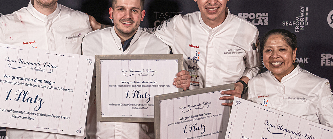Die Sieger stehen fest: Während des Vorfinals von Koch des Jahres in Achern wetteiferten die Talente im Friesenkrone-Wettbewerb „Omas Homemade-Edition“. Von der Fachjury bewertet wurden klassische Fischgerichte mit Herings- und Matjesfilets. Mit ihrer Liebe zu Omas Küche, innovativen Interpretationen und berührenden Geschichten über die Inspirationsquelle für ihre Gerichte begeisterten am überzeugendsten die Kandidaten Hans Lange Rodriguez, Marcel von Winckelmann, Marcel Förster und Miguel Marques. Die Vier nehmen am exklusiven Presseevent „Kochen am Meer“ powered by Friesenkrone am 18. und 19. Juni in Bremerhaven teil.