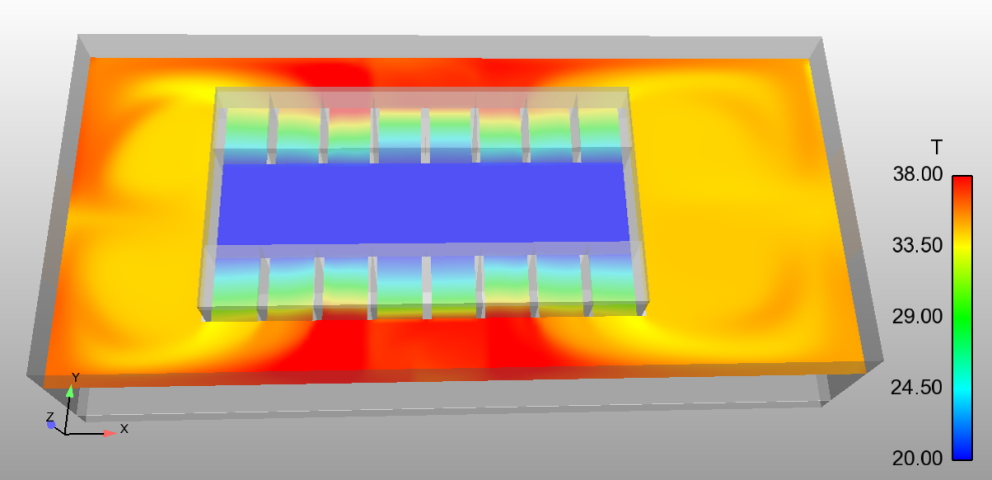 Mittels CFD-Simulation wird nun das Strömungs- und Temperaturverhalten der kalten und warmen Luft simuliert. Auf Basis der gewonnenen Daten können räumliche Faktoren oder die Lüftungsanlagen optimiert und Energiekosten gesenkt werden. Dafür wird der gesamte Raum mit Zu- und Abluft inklusive der Kalt- und Warmgänge sowie der Wärme- und damit verbundene Strömungsbildungen abgebildet.
