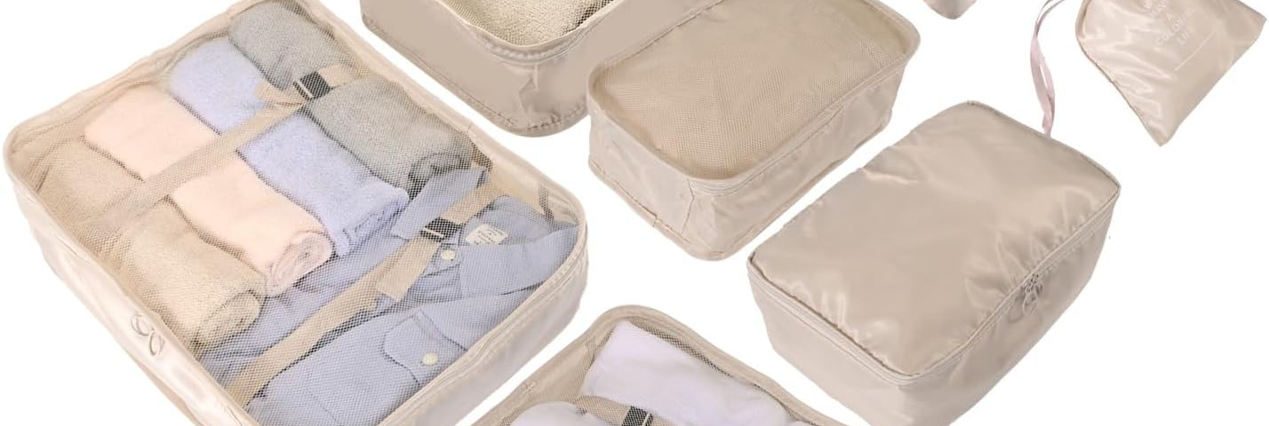 8er Set Koffer Organizer beige – mit Kosmetiktasche – Packtaschen – Packing Cubes – Reiseorganizer & Kleidertaschen für Reisen —>> JETZ KAUFEN