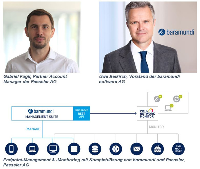 Aufgrund der ständig wachsenden IT-Umgebungen ist ein zuverlässiges Echtzeit-Monitoring für die Arbeit von IT-Administratoren inzwischen unverzichtbar. Mehr als 200.000 Systemadministratoren nutzen daher PRTG Network Monitor, um die Verfügbarkeit und Performance ihrer Systeme zu gewährleisten, Kosten und Aufwand für Routinearbeiten zu senken und somit Ressourcen für strategische Projekte zu schaffen. „Wir geben Systemadministratoren ein Werkzeug an die Hand, mit dem sie ihren Arbeitsalltag optimieren und die Verfügbarkeit ihrer Systeme sicherstellen können“, sagt Gabriel Fugli, Partner Account Manager der Paessler AG. „Dazu setzen wir auf das Zusammenwirken verschiedener Lösungen im Rahmen unserer Technologiepartnerschaften. Über offene Schnittstellen und vorkonfigurierte Sensoren integrieren wir neben Endgeräten auch andere Software-Lösungen, wie beispielsweise seit Kurzem die baramundi Management Suite.“