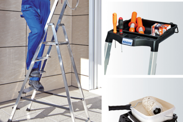 …mehr Arbeitsfläche, mehr Komfort, mehr Sicherheit Bei Tätigkeiten an höher gelegenen Arbeitsplätzen sind Stehleitern als Steiglösung eine gute Wahl. Arbeiten…