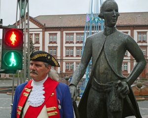 Pirmasens stattet fünf Fußgängerampeln in der Innenstadt mit prägnanten Motiven des Stadtgründers Landgraf Ludwig IX. von Hessen-Darmstadt aus Rot stehen…