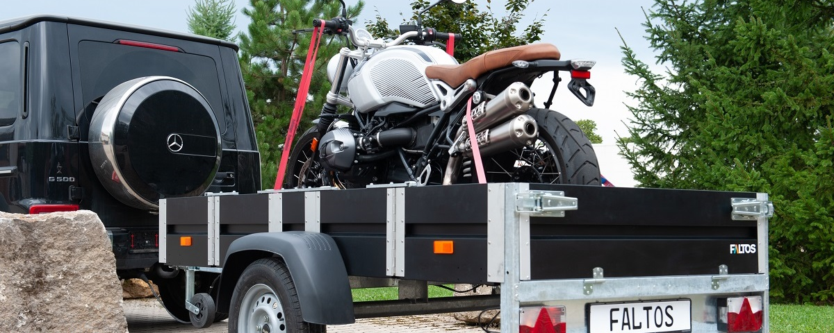 Mit seiner langen Ladefläche und einer maximalen Zuladung von 550 kg ist der FALTOS für eine Vielzahl an Transportaufgaben geeignet – z.B. für schnellere Umzüge, komfortable Zweiradtransporte und einfache Fortbringung größerer Materialmengen. Anpassbare Ablastungen, die eine Einstellung von Nutzlast und zulässiger Geschwindigkeit umsetzen, ermöglichen dabei die sichere, individuell gewünschte Transportlösung. Ergänzend sorgen integrierte Verzurrösen in den Bodenplatten für eine flexibel umsetzbare Ladungssicherung. Die Funktionalität seiner faltbaren Anhängerlösung erweitert FALTOS mit passendem Zubehör – darunter Halterungen für Motorräder und E-Bikes bis hin zu verschiedenen Planen und Ladungssicherungsnetzen.