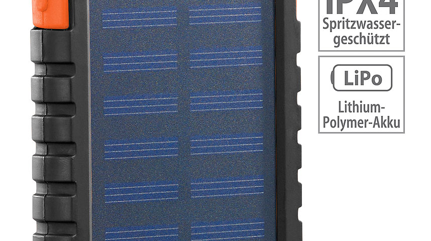 Clever und stromsparend dank Solar-Ladefunktion: Einfach in die Sonne legen, schon lädt man die Powerbank von PEARL im Notfall umweltfreundlich nach. Scheint die Sonne einmal nicht, lässt sich der Energiespeicher per Micro-USB-Kabel betanken. Über die LED-Anzeige sieht man immer den aktuellen Energie-Status.