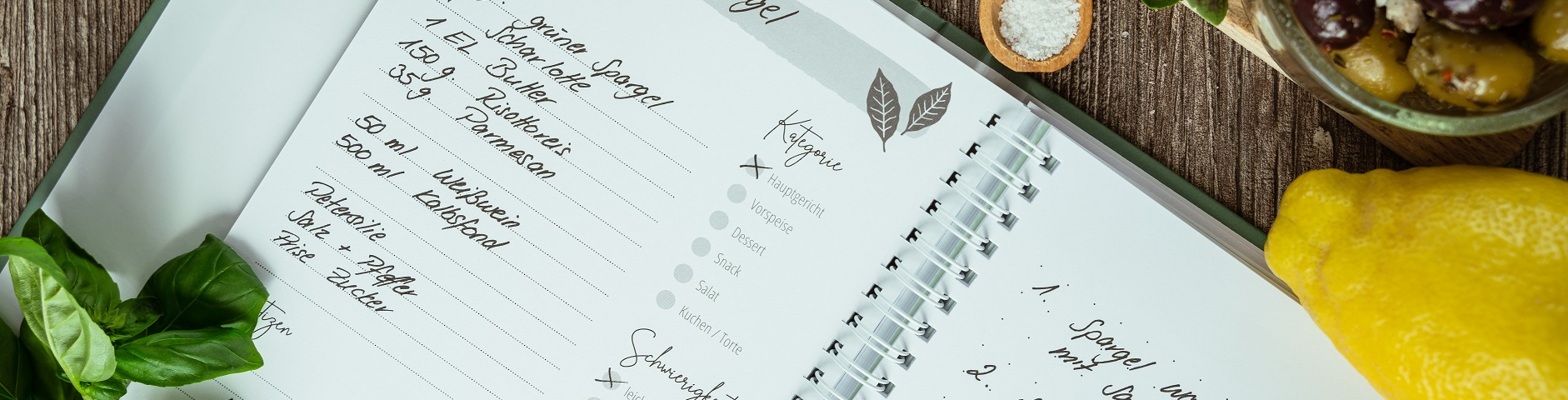 Denn das Dilemma mit den losen Rezepten kennt fast jeder. Oft findet man in einer Zeitschrift ein Rezept für leckere Grillbeilagen oder Kuchen, die man demnächst mal ausprobieren möchte, man reißt die Seite raus und dann liegt diese irgendwo rum… Die Freundin hat ein neues Tiramisu ausprobiert und gibt einem gerne das Rezept dafür mit – und irgendwann ist der Stapel an Rezeptideen in der Schublade oder einem Schrank so hoch, dass man keinen Überblick mehr hat. Ideal für solche Fälle ist das neue Rezeptbuch zum Selberschreiben des Labels Ohhh…! Damit lassen sich auf 150 Seiten 60 eigene Rezepte auf jeweils einer Doppelseite sammeln. Das Rezeptbuch hat außen ein robustes Hardcover und innen eine praktische Spiralbindung. So bleibt die Seite, die man braucht, beim Kochen immer offen liegen. Auf den bereits vorgedruckten Seiten lassen sich Lieblingsrezepte für Vorspeisen, Hauptgerichte, Salate oder Nachspeisen eintragen. Durch den gut durchdachten Aufbau der Vordrucke lassen sich auch eigene Notizen, der Schwierigkeitsgrad des Rezeptes und der Zeitaufwand festhalten.