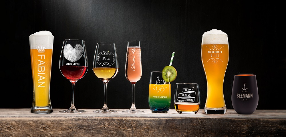 Auf Partys gibt es schon mal das Problem, dass Gläser verwechselt werden. In der „manutextur“ stehen Bier-, Sekt-, Wein- und Softdrinkgläser mit vielen Motiven zur Wahl, die mit Namen personalisiert werden können.