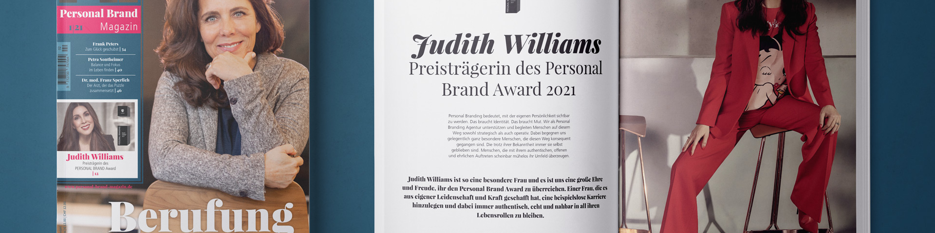 Das Highlight des Magazins: ein Interview mit Judith Williams, die mit dem diesjährigen Personal Brand Award geehrt wurde, für ihren überzeugenden und authentischen Auftritt als „Marke“. Seit vielen Jahren ist Judith Williams bereits bekannt und beliebt. Stets professionell, konsequent authentisch und bodenständig, ist ihre „Personal Brand“ direkt mit ihrer Persönlichkeit und mit ihrem Unternehmenserfolg verknüpft – und ein tolles Vorbild. Gerade für Frauen, aber auch für alle Selbstständigen und Unternehmer, gleich welchen Geschlechts oder Herkunft.
