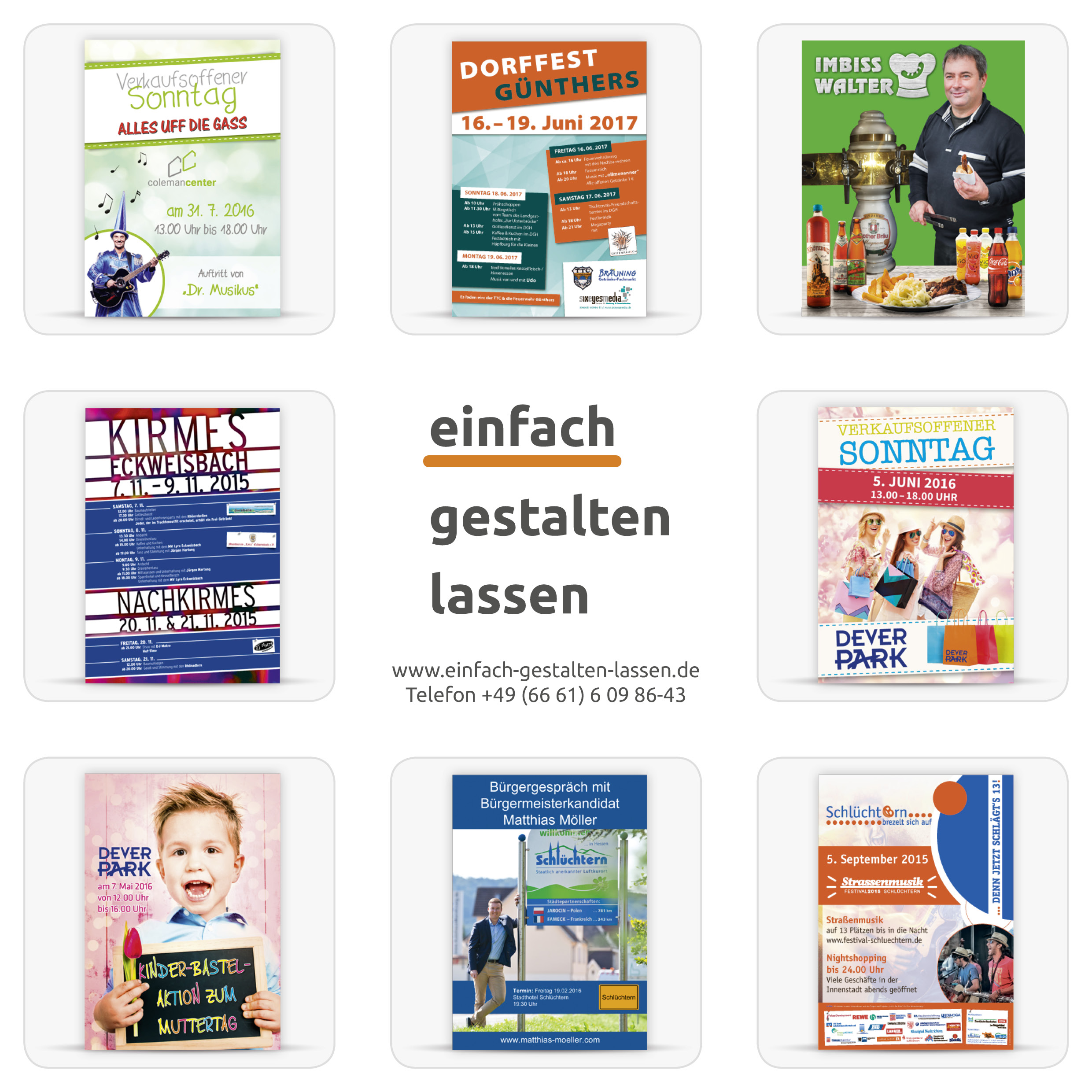 Hinter dem Portal steht die seit vielen Jahren etablierte Werbeagentur sixeyesmedia gmbh. Mit www.einfach-gestalten-lassen.de ist das Team dem Wunsch der Kunden nachgekommen, Gestaltungs- und Druckaufträge zu vereinfachen. Dank des Konfigurators behalten die Auftraggeber stets die Kosten im Blick und können sofort entscheiden, welche Leistungen beauftragt werden sollen. So wird im Vorfeld geklärt, welches Format für das Werbeplakat sich am besten eignet, welches Bildmaterial zum Einsatz kommen soll und ob die Agentur die Texte erstellt. Jedes Plakat wird individuell nach Kundenwunsch gestaltet.