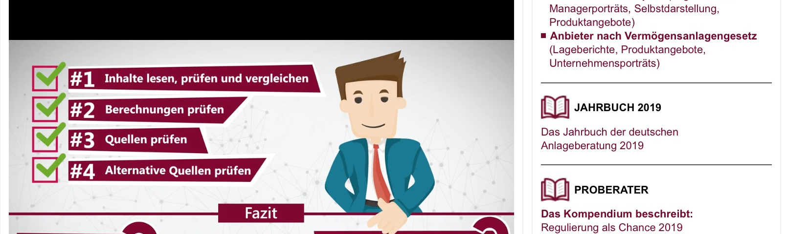 Erklärvideo und Checkliste der DFPA Deutsche Finanz Presse Agentur helfen bei der Plausibilitätsprüfung für Kapitalanlageberater / Finanzberater