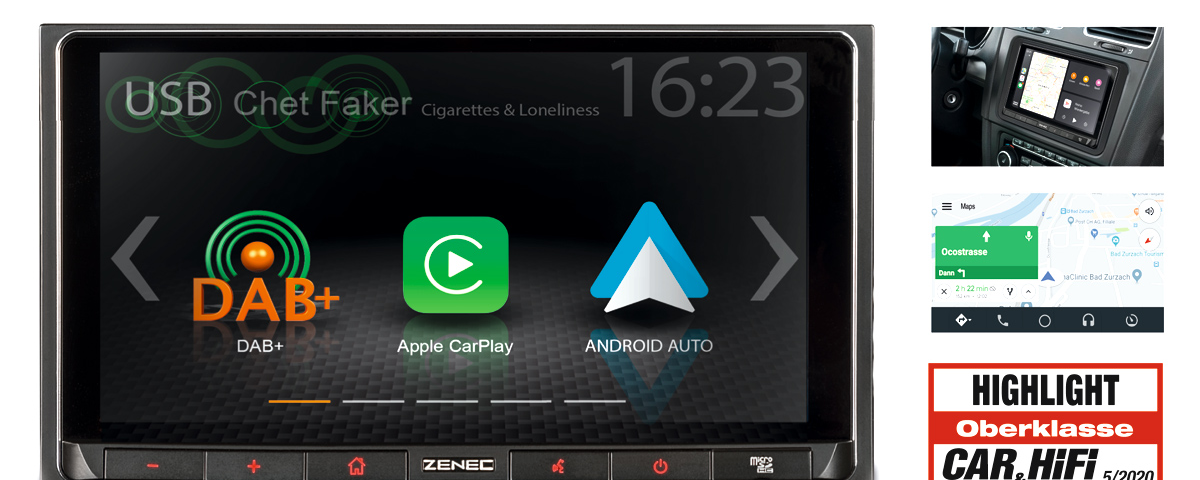 ZENECs 2-DIN Autoradio / Multimediasystem mit Apple CarPlay und Android Auto überzeugt im Test der Zeitschrift Car & HiFi (Ausgabe 05/2020)