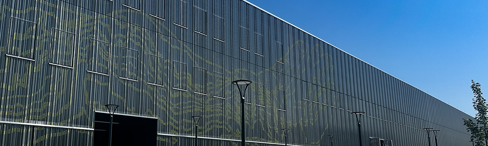 Maßhaltigkeit und Wiederholgenauigkeit als Schlüssel: Exakt positionierte Lochungen ermöglichen die saubere Umsetzung der Motivwirkung auf 5.800 m² Aluminiumlochblech.