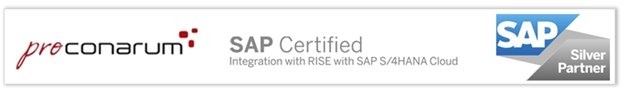 The SAP Integration and Certification Center (SAP ICC) has certified that the integration software for its proconarum, Release 1.0 integrates with RISE with SAP S/4HANA Cloud using standard integration technologies.