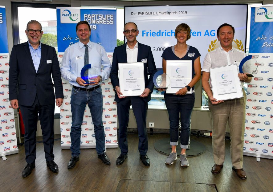 Am 25. Juni 2019 hat das Umwelt-Managementunternehmen Partslife zum achten Mal in Frankfurt am Main die begehrten Umweltpreise vergeben. Erhalten haben sie drei Unternehmen, die sich mit ihren innovativen Projekten um Umweltschutz und Nachhaltigkeit verdient gemacht haben. Den ersten Platz belegt ZF Aftermarket mit einem neuartigen Verfahren, bei dem organische Lösungsmittel aus der Produktion von Bremsbelägen verbannt wurden. Auf dem zweiten Rang konnten sich gleich zwei Bewerber platzieren. So punktete das Unternehmen Wasser 3.0 mit einer Methode, die Mikroplastik und Medikamentenrückstände aus dem Trinkwasser filtern kann. Chemiespezialist MAKRA erhielt einen Umweltpreis für seine Handreinigungsprodukte ohne Mikroplastik. Die Preisverleihung fand im Rahmen einer großen Gala-Veranstaltung auf einem Main-Dampfer statt. Die Jury bilden ausgewiesene Experten aus dem Kfz-Aftermarket.