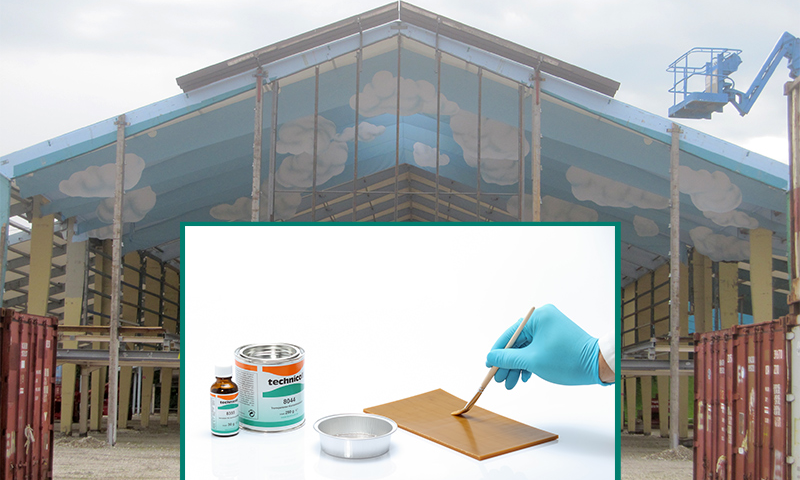 In Böden oder Trägermaterialien von modernen Festzelten findet man dagegen häufig den festen Kunststoff PVC-hart oder die Kunststoffe PE und PP. Diese Materialen haben eine hohe mechanische Steifigkeit, gute elektrische Eigenschaften. PE und PP sind zudem sehr bruchfest und haben eine hohe Beständigkeit gegen nahezu alle äußeren Einflüsse, wie z.B. Kälte, Feuchtigkeit oder Schmutz. Hightech-Klebstoffe müssen bei diesen Materialen also nicht nur spannungsausgleichend wirken, auch wasserfest und druckbeständig und die Funktion eines elektrischen Isolators übernehmen. Diese Anforderungen erfüllen Spezialklebstoffe wie technicoll® 9410-1 oder technicoll® 9110, wenn große Flächen geklebt werden sollen.