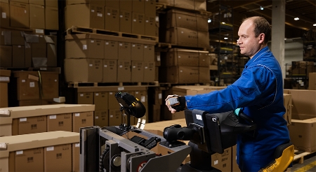MARK Basic multi range eignet sich besonders für die Anforderungen der Lagerhaltung im Handel wie Kommissionierung und Konsolidierung. Beim Scannen von Lagerplatz- und Artikel-Barcodes zum Beispiel müssen sich die Mitarbeitenden ständig auf einem Hubwagen bewegen. Dabei steigen sie immer wieder auf und ab. Mit MARK Basic multi range können sie nun ohne große Einschränkungen vom Fahrzeug aus scannen. Gleichzeitig haben sie die Möglichkeit, Artikel im Nahbereich schnell zu bearbeiten. Dabei müssen sie ihre Arme nicht in eine unergonomische Position bringen.