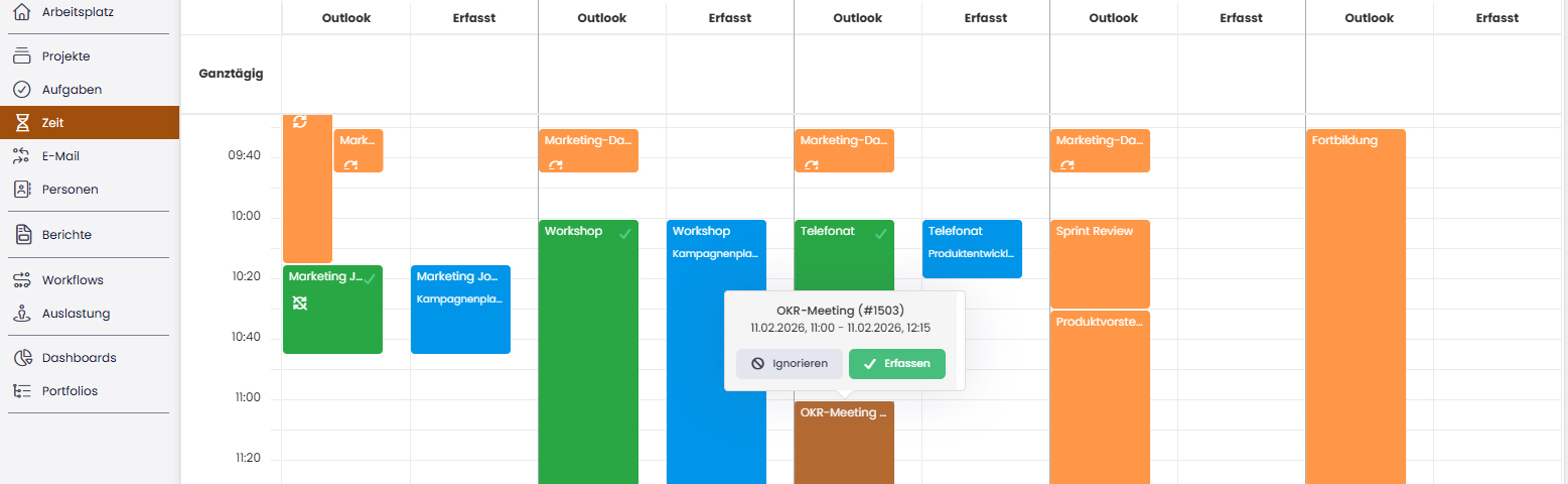 Im Zeiterfassungsbereich: Outlook-Termine einfach und direkt verbuchen